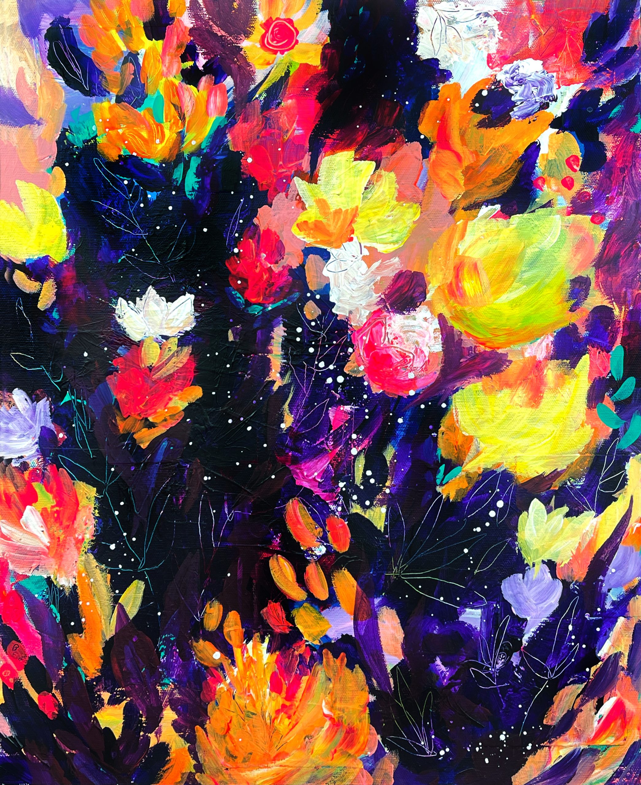 The Night Garden – Original Painting on Stretched Canvas – 20 x 16″